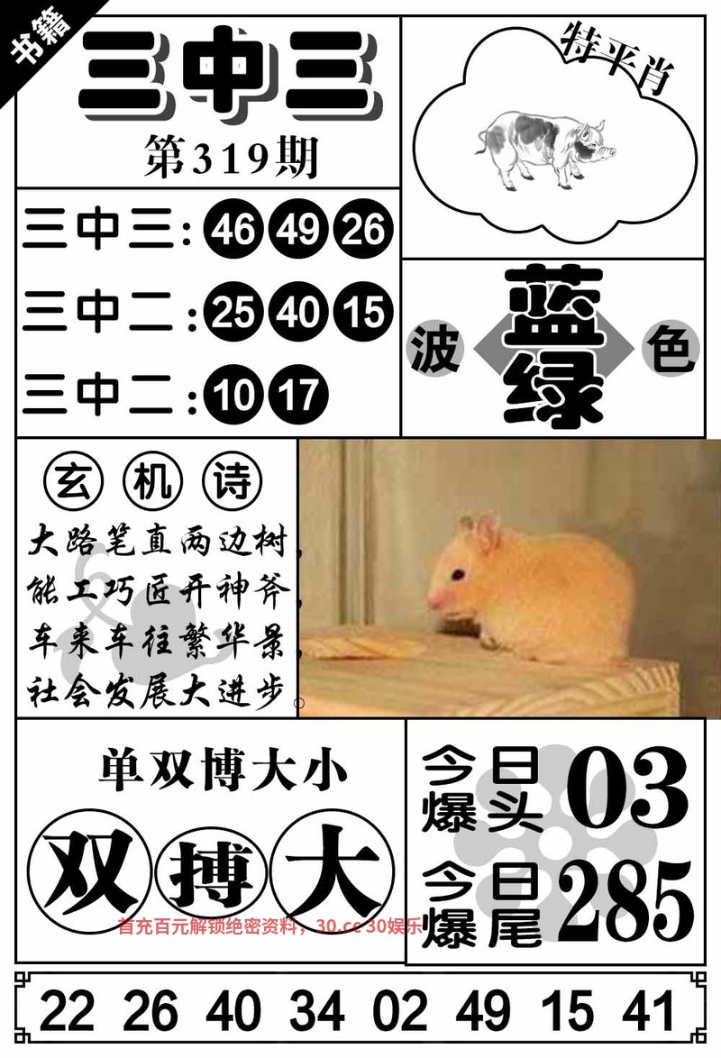 | 319期:单双三肖【双肖+牛猪鸡】开:鸡45准 |